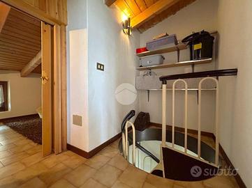 Il piano superiore, collegato da una scala interna a chiocciola, ospita il locale sottotetto, suddiviso in due camere da letto che, grazie all'esposizione favorevole a sud e a nord, garantiscono un buon ricambio d'aria e un'ottima vivibilità.