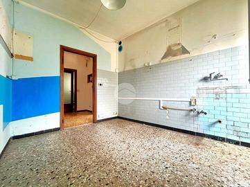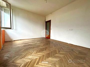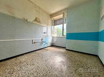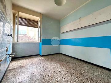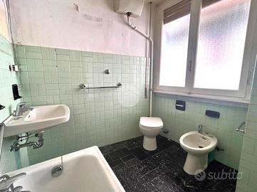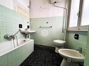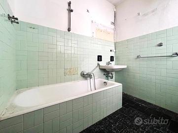 Il bagno, finestrato e attualmente dotato di vasca, può essere trasformato con facilità in uno spazio moderno e funzionale.
