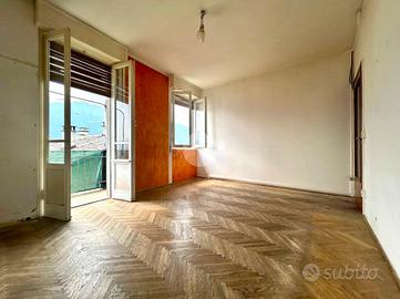 Il soggiorno, ampio e luminoso, si apre su un balcone esposto a sud, ideale per godere della luce naturale per gran parte della giornata.