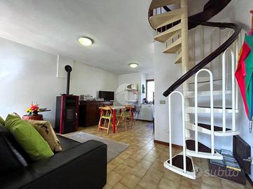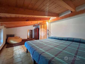 VICOLO PEDRUSC - CASTIONE Proponiamo in vendita a Castione Andevenno porzione di fabbricato con ingresso indipendente, situata in posizione tranquilla e facilmente raggiungibile tramite il vicolo Pedrusc. Una scala esterna conduce all'ingresso principale, garantendo privacy e indipendenza. La proprietà si sviluppa su più livelli. Al piano terra si trova una cantina finestrata, ideale come spazio di servizio o deposito. Il primo piano accoglie un soggiorno con angolo cottura e un bagno finestrato, ambienti luminosi e ben esposti. Il piano superiore, collegato da una scala interna a chiocciola, ospita il locale sottotetto, suddiviso in due camere da letto che, grazie all'esposizione favorevole a sud e a nord, garantiscono un buon ricambio d'aria e un'ottima vivibilità. L'immobile dispone di riscaldamento autonomo tramite stufa a pellet installata cinque anni fa, una soluzione pratica ed efficiente che assicura comfort durante i mesi invernali. Il contesto circostante è silenzioso e riservato, ideale per chi desidera un rifugio lontano dal traffico e dalla frenesia quotidiana. Utilizzata fino ad oggi come casa vacanze, questa soluzione si presta perfettamente sia come seconda abitazione, sia come investimento da mettere a reddito, data la crescente richiesta di immobili per soggiorni turistici in Valtellina.