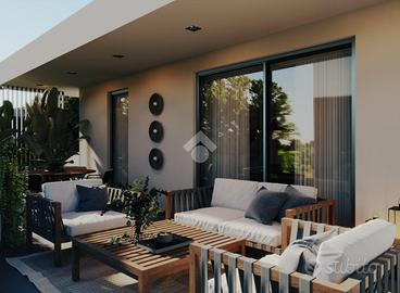 Arricchisce il soggiorno un portico pensato come un ampliamento della zona giorno stessa, un area vivibile d'estate ma anche d'inverno nelle belle giornate. Giardino privato.