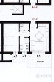 Disimpegno che accede nella zona notte con bagno, una camera matrimoniale.