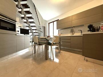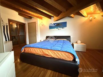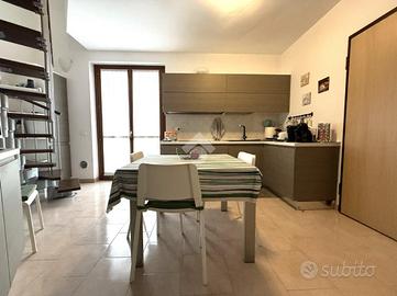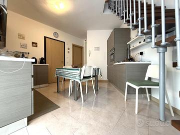SORESINA: in zona residenziale tranquilla del paese, proponiamo in vendita appartamento bilocale disposto su due livelli, posto al secondo ed ultimo piano. L'accesso all'abitazione avviene tramite portoncino blindato, che introduce nella cucina abitabile, comoda e ben organizzata, separata dal soggiorno. La zona giorno risulta luminosa e accogliente, con uscita diretta sul balcone, ideale come sfogo esterno. Sullo stesso livello è presente un bagno con doccia, funzionale e rifinito con gusto. Attraverso una scala interna si accede al piano superiore, dove si sviluppa la zona notte composta da una camera da letto matrimoniale impreziosita da travi a vista, che conferiscono calore e carattere all'ambiente. A servizio del piano si trova un secondo bagno, dotato di attacchi per la lavatrice. Completa il livello un ampio terrazzo vivibile, perfetto per pranzi e cene all'aperto o momenti di relax. Al piano terra è incluso un box auto singolo, comodo e facilmente accessibile. Soluzione ideale per chi cerca un'abitazione pronta da vivere, in un contesto riservato e ben collegato.