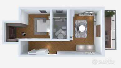 L'appartamento si trova al primo piano di una palazzina ordinata e si presenta in discreto stato interno, pronto per essere personalizzato secondo i propri gusti. La disposizione interna è funzionale e accogliente: ingresso su corridoio, soggiorno con cucinino, spaziosa camera da letto matrimoniale e bagno.