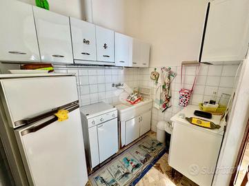 L'ingresso si apre su un corridoio che conduce agli ambienti principali: un soggiorno luminoso con angolo cottura e accesso al balcone e una camera matrimoniale con un secondo balcone, da cui godere della brezza marina. Completano la proprietà un bagno finestrato e spazi ben organizzati che rendono la casa pratica e accogliente.