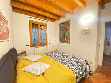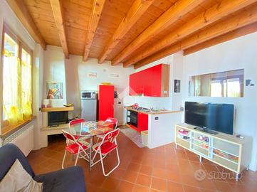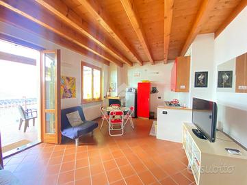 La soluzione si trova in zona collinare a 2 km dal centro del paese e dal lago. Il complesso è stato realizzato nel 2001 e si presenta in buono stato manutentivo. La proprietà è posta al piano primo ed ultimo ed è composta dall'atrio d'ingresso, dal soggiorno cottura con loggiato vista lago, dalla camera e dal bagno.Completano la proprietà il box singolo al piano interrato e l'ampia corte esclusiva al piano terra. Le spese condominiali annue sono di circa 300 euro. A pochi metri dalla casa è presente un ampio parcheggio pubblico gratuito.