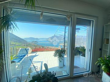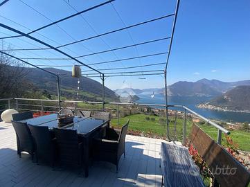 Appartamento al piano terra con stupenda vista lago. La proprietà si trova in posizione collinare a circa 2 km dal centro del paese e dal lago. La soluzione è posta in un contesto trifamiliare oggetto di ristrutturazione nel 2014. Ingresso indipendente con cucinotto, soggiorno caratterizzato da un'ampia vetrata con uscita diretta sulla terrazza, bagno e camera. Completano la proprietà la corte esclusiva utilizzabile in parte come due posti auto, una lavanderia e un ripostiglio.