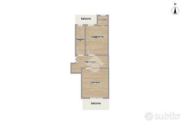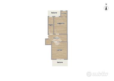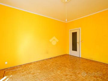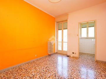 Al quarto piano di un condominio dotato di ascensore, si trova questo luminoso bilocale. L'ingresso divide in maniera funzionale gli ambienti. Da un lato la zona giorno, composta da soggiorno e cucinino, dall'altro la zona notte, con la camera da letto. Il bagno, finestrato, è dotato di vasca e boiler elettrico. Il riscaldamento è centralizzato, garantendo comfort e praticità. Grazie alla doppia esposizione con due ampi balconi, gli ambienti risultano ariosi e luminosi. A completare la proprietà vi sono una cantina ed un box auto.