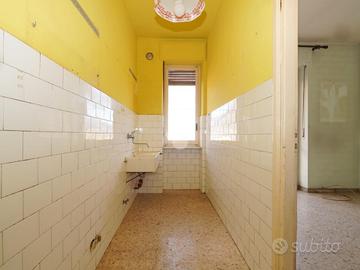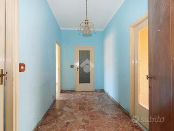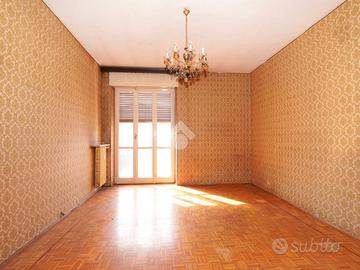 Il condominio si trova nei pressi della stazione ferroviaria, a poche centinaia di metri dai negozi del centro paese. La proprietà condominiale è delimitata dal passo carraio dotato di cancello automatico. L'appartamento è situato al terzo piano servito da ascensore. L'ingresso sfocia sul corridoio che, posto al centro della parte abitativa, disimpegna i vari ambienti ed un pratico ripostiglio. La zona giorno, attualmente separata tra tinello e cucinino da un muro tramezzo, può essere facilmente ricongiunta in un unico ambiente, rendendo gli spazi più moderni e funzionali. Caratteristica comune dei vani è la metratura confortevole degli spazi calpestabili. La camera da letto matrimoniale supera i 16 metri quadrati, garantendo un'ottima vivibilità. Il bagno si presenta allo stato originario, offrendo la possibilità di una personalizzazione secondo le proprie esigenze. L'appartamento dispone di due balconi ampi, posizionati sulle due facciate del condominio, che assicurano una buona luminosità naturale e un'efficace ventilazione degli ambienti. Sul balcone è presente la predisposizione per l'allaccio del gas. Il riscaldamento è semi autonomo a metano. La centrale termica condominiale è stata recentemente sostituita nel 2024, apportando miglioramenti sotto il profilo energetico a beneficio del futuro acquirente. Completano la proprietà una cantina al piano seminterrato ed un box auto incluso nel prezzo.