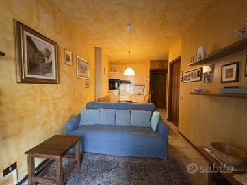 L'abitazione si presenta accogliente e ben distribuita, con una zona giorno luminosa che offre uno spazio ideale per la convivialità, collegata direttamente al balcone, perfetto per godere di un affaccio arioso e di momenti all'aperto. La camera matrimoniale, di generose dimensioni, garantisce comfort e privacy ed è anch'essa dotata di accesso al medesimo balcone, creando una piacevole continuità tra gli ambienti interni ed esterni. Il bagno, funzionale e ben organizzato, completa la disposizione interna dell'appartamento.