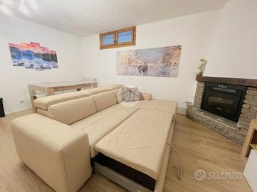 L'appartamento si sviluppa su due locali ben distribuiti. La zona giorno, calda e accogliente, è valorizzata dalla presenza del camino e del divano letto, creando uno spazio conviviale e confortevole. La camera da letto è ampia e ben organizzata, con letto matrimoniale e letto a castello, soluzione ideale per famiglie o per ospitare amici. Il bagno, pratico e in ordine, è dotato di doccia.