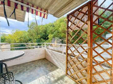 L'appartamento è composto da un ingresso che serve direttamente sull'ampio soggiorno con cucina abitabile e uscita su un terrazzo.