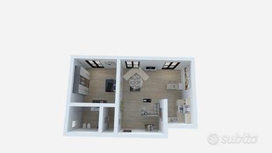 L'appartamento, di circa 67 mq, offre un ambiente funzionale e ben distribuito.