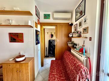 Il bagno, finestrato, è completo di doccia e dispone di pratici ripostigli a muro per ottimizzare lo spazio. Questa soluzione è ideale per giovani coppie, perfetta sia come prima casa che come investimento. Un'opportunità imperdibile per chi cerca un rifugio accogliente e ben posizionato, nel cuore del centro abitato di Borgo Hermada e a pochi chilometri dal mare.