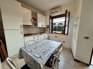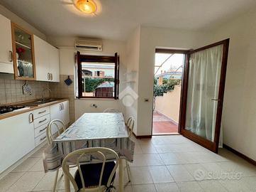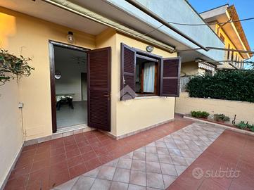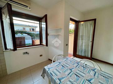 Proponiamo in vendita esclusiva un accogliente bilocale situato al piano rialzato di un tranquillo condominio in Via Angelo Sani, nella frazione Borgo Hermada di Terracina. L'immobile si apre su un ingresso indipendente, preceduto da un piccolo giardino curato, dotato di impianto di subirrigazione per la manutenzione del verde. Due gradini conducono a un terrazzo pavimentato, arricchito da una pergotenda, ideale per vivere momenti di relax all'aperto, e che funge da accesso principale alla proprietà. Varcata la porta d'ingresso, si viene accolti da un luminoso soggiorno con angolo cottura, ambiente arioso e ben distribuito. Un pratico disimpegno conduce alla zona notte, dove troviamo un bagno dotato di sistema di aerazione forzata e una camera da letto matrimoniale, spaziosa e confortevole.L'abitazione si presenta in ottimo stato conservativo: infissi in legno doppio vetro, climatizzatori sia nella zona giorno che nella zona notte, allaccio alla rete idrica "Acqua Latina" e alimentazione a bombole per il gas.Completa la proprietà un posto auto assegnato situato proprio di fronte all'immobile. La zona, inoltre, offre ampia disponibilità di parcheggio per eventuali ulteriori vetture.