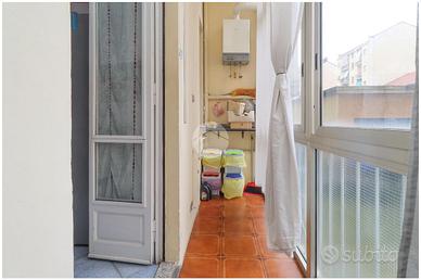 In contesto degli anni '70 in Via Luini nel cuore di zona Lucento. L'ingresso è living con la cucina a vista, la quale è lineare ed abitabile, con l'accesso sul primo balcone verandato lato cortile. La camera matrimoniale risulta luminosa, ampia e ben squadrata, il che ne facilita l'arredamento. ll servizio, è finestrato e provvisto di tutti i sanitari tra cui la vasca da bagno trasformabile in doccia. Inoltre vi è un doppio ripostiglio. Tutti gli infissi sono in doppiovetro. Completa l'immobile una cantina di pertinenza al piano interrato.
