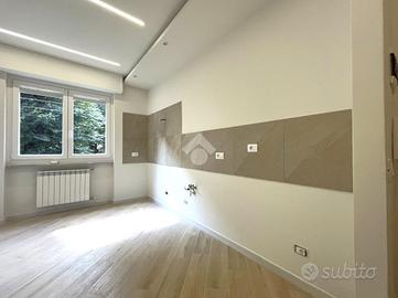 COMPLETAMENTE RISTRUTTURATO In Via Giovanni Servais 200, nel Villaggio delle Rose, bilocale completamente ristrutturato con certificazioni impianti, posto ad un primo piano in stabile realizzato in paramano, dotato di ascensore. Tramite il portoncino blindato di ingresso, si accede alla zona giorno living pensata per predisporre un'accogliente angolo cottura, moderno e attrezzato con tutti i comfort necessari, un comodo divano ed una parete TV. Un'ampia camera matrimoniale, accogliente e luminosa, grazie all'affaccio sul balcone (dotato di tende veranda), gode dello spazio sufficiente per un letto matrimoniale ed un guardaroba. Bagno finestrato dotato di box doccia e di tutti i sanitari utili. A completare la descrizione al piano interrato una cantina di pertinenza. L'immobile è stato oggetto di ristrutturazione completa: impianto elettrico, idraulico, tapparelle elettriche motorizzate, finestre in PVC a barriera acustica e termica.
