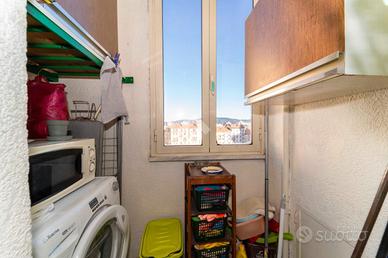 La soluzione si trova al quinto piano di uno stabile ad angolo con Via Genola e Via Monginevro. L'appartamento è composto da un disimpegno che suddivide i vari ambienti. La zona giorno dispone di una finestra con triplo vetro che illumina l'ambiente ed un cucinino finestrato con zona lavanderia. La camera da letto, di generose dimensioni, affaccia sulla via principale e presenta una piccola cabina armadio. Il bagno è finestrato e con vasca. A concludere la soluzione troviamo un ripostiglio ed una cantina di pertinenza.