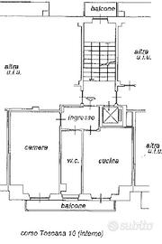 Negli interni di corso Toscana, nella tratto tra via Borgaro e via Viterbo, in un elegante contesto anni 70 con ascensore, in ordine nelle parti comuni e con il vano scale recentemente ritinteggiato, proponiamo un bilocale da rendita attualmente locato con regolare contratto. L'immobile internamente si presenta in discrete condizioni ed è composto da un ingresso che disimpegna la zona giorno, dove è presente un'ambiente unico con la cucina a vista, la camera da letto, la quale risulta molto spaziosa a planimetria quadra grazie alla regolare ripartizione degli spazi ed il bagno finestrato e completo di tutti i sanitari utili compreso lo spazio per posizionare la lavatrice. Completa la proprietà la cantina al piano interrato.