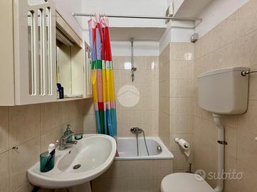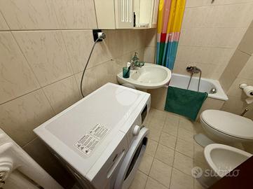 Il bagno è cieco, dotato di vasca e doccia, all'interno è posizionata anche la lavatrice (sostituita nel 2024) e gli accessori tradizionali.