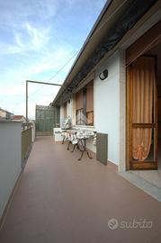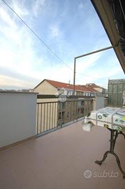 In via Solari, una perpendicolare tra via Luini e corso Toscana, a 50 metri dalla servitissima via Borgaro e all'interno di un contesto signorile anni '70 con ascensore proponiamo un bilocale con terrazzo al piano attico. L'immobile si caratterizza per lo spazio esterno fruibile dove, grazie alla metratura generosa, è possibile organizzare una zona pranzo/conversazione apprezzando il panorama suggestivo con la magnifica vista sull'arco alpino. L'appartamento internamente si presenta in buone condizioni grazie agli interventi di ristrutturazione adottati in passato. La zona notte si compone di una camera da letto dalle dimensioni abbondanti dove attualmente è stato possibile creare, con una struttura removibile, due piccole camerette in cui facilmente ripristinabile la camera padronale che affaccia con portafinestra sul terrazzo. Completa la proprietà una cantina al piano interrato.