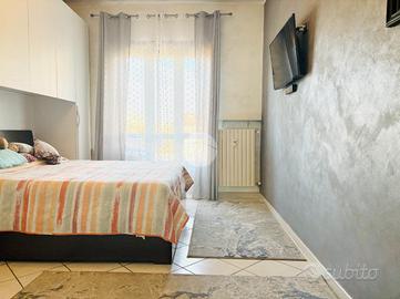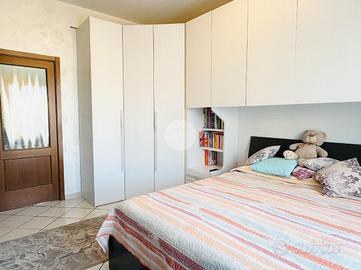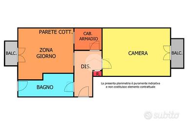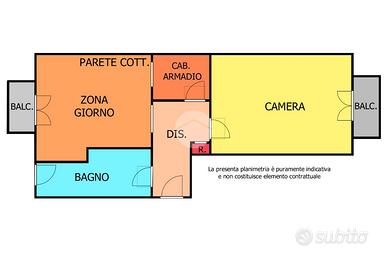 L'appartamento gode di una doppia esposizione che assicura una buona luminosità durante tutto l'arco della giornata. L'ingresso si apre su un comodo disimpegno, dal quale si accede ai vari ambienti: la zona giorno con angolo cottura, dotata di condizionatore caldo/freddo, è accogliente e ben distribuita, ideale per chi cerca un ambiente funzionale e facile da vivere. La camera da letto è spaziosa e dispone di una cabina armadio, mentre un pratico armadio a muro e un ripostiglio offrono ulteriore spazio contenitivo.