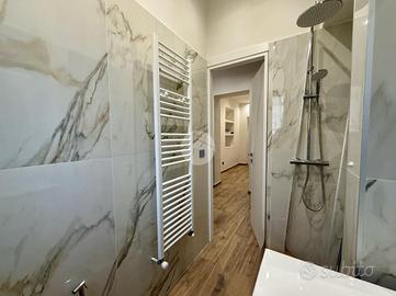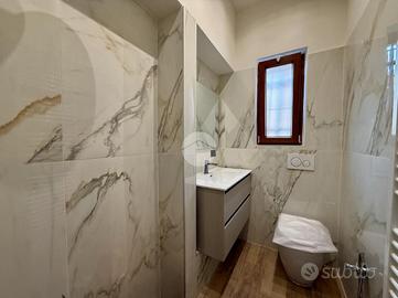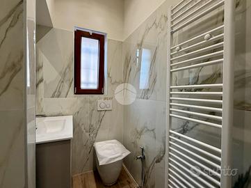 - Bagno finestrato con doccia, sanitario e lavabo.
