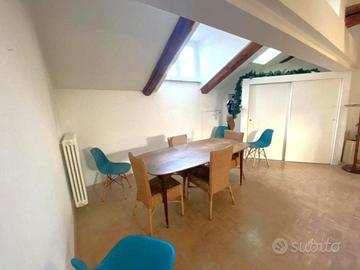 Appartamento in affitto transitorio - da 1 a 8 mesi Corso Vittorio Emanuele, pieno centro di Torino - Palazzo Priotti Nel cuore pulsante di Torino, all'interno dell'elegante e curato Palazzo Priotti, proponiamo in affitto transitorio un loft mansardato dal fascino unico. Una soluzione luminosa, caratterizzata da spettacolari travi a vista, ideale per chi cerca un ambiente particolare e ben collegato per un periodo limitato. L'immobile è inoltre adatto anche per affitti brevi in formula BNB, sempre entro il limite massimo di permanenza previsto. Si trova al 5° piano con ascensore e gode del servizio di portineria. Il canone è di 1.600€ mensili, comprensivi di spese. All'ingresso si apre un ampio open space che accoglie la zona soggiorno e un angolo dedicato alla camera da letto, entrambi illuminati da finestre che assicurano luce naturale per tutta la giornata. La cucina è abitabile, separata e funzionale. A completare la soluzione troviamo uno studio - perfetto per lavorare o studiare da casa - e un bagno finestrato con velux. Il riscaldamento è centralizzato con termo-valvole. Un appartamento ricco di atmosfera, ideale per chi desidera vivere in centro senza rinunciare al comfort e a un contesto elegante.