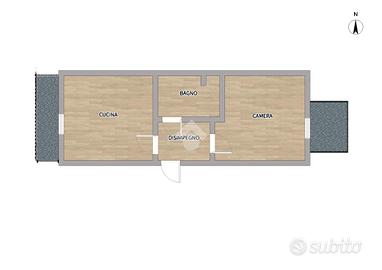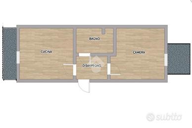 Ha ingresso su disimpegno. Proseguendo troviamo una camera da letto di taglio matrimoniale, un ampia cucina abitabile e il servizio ben organizzato. Gli spazi interni sono pensati per garantire praticità. Internamente l'appartamento si presenta in ottime condizioni.
