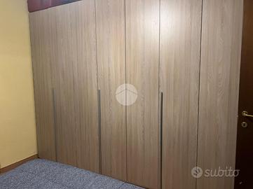 La camera da letto matrimoniale è luminosa e troviamo una porta finestra che ci conduce al secondo balcone.