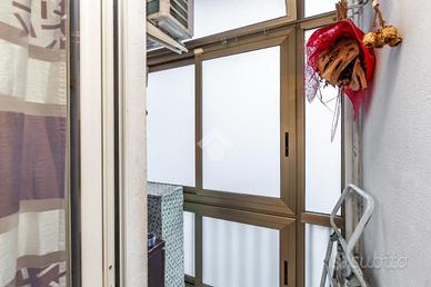 Il palazzo è in buone condizioni nelle parti comuni e sono stati deliberati i lavori di riqualificazione della centrale termica, rifacimento canne fumarie e risanamento facciata lato strada (a carico degli attuali proprietari). La casa è posta al piano rialzato ed è dotata di doppia esposizione. L'immobile internamente è stato negli anni ristrutturato ed è tutt'ora abitabile fin da subito. L'accesso avviene tramite un portoncino blindato che si affaccia sull'ingresso il quale disimpegna gli ambienti. La cucina è abitabile ed è dotata di condizionatore. L'affaccio è sull'interno cortile grazie al balcone ed alla finestra del cucinino. La camera da letto, esposta tramite finestra lato strada, è ampia ed è stata divisa in maniera tale da ricavare uno studio/cameretta. Il bagno, con doccia, ha la finestra. Sull'ingresso affaccia e completa l'interno dell'appartamento il ripostiglio. Gli infissi esterni sono in pvc. La proprietà dispone di una cantina al piano interrato. Il riscaldamento è centralizzato con termo valvole. L'appartamento sarà libero dal 01/05/2026.