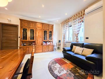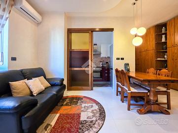 In un edificio di sei piani risalente agli anni Sessanta, solido esempio dell'edilizia dell'epoca, si inserisce questa interessante soluzione abitativa. La facciata, prevalentemente rivestita in mattoncini a vista, è stata ben conservata nel tempo e mantiene intatto il suo fascino sobrio ed elegante, testimoniando la cura dedicata alla manutenzione dello stabile. L'ingresso condominiale accoglie con un androne ordinato e piacevole. Una seconda porta in legno satinato introduce al vano scala, anch'esso ben tenuto, dove è presente l'ascensore che conduce comodamente al piano. Varcata la porta blindata dell'appartamento, si viene accolti direttamente nella zona giorno, cuore pulsante della casa. L'accesso è living su un ambiente ampio e arioso grazie alla presenza della porta finestra che permette di accedere al balcone con esposizione a lato via. E' perfettamente distribuito, pensato per garantire funzionalità e libertà di movimento. La generosa metratura consente di organizzare con facilità una zona pranzo ben definita e un'area relax confortevole, senza mai rinunciare alla fluidità degli spazi. Un elegante ribassamento con faretti valorizza il soffitto: l'illuminazione, modulabile tra luce calda e fredda, permette di personalizzare l'atmosfera a seconda del momento della giornata o dell'occasione. A completare la zona, lo split dell'aria condizionata assicura comfort anche nei mesi più caldi. Il cucinino, separato da una pratica porta scorrevole, rappresenta uno spazio funzionale e ben organizzabile. Dotato di finestra, risulta luminoso e ben aerato, con la possibilità di inserire una cucina completa di elettrodomestici, incluso il frigorifero, sfruttando al meglio ogni centimetro disponibile. La camera da letto matrimoniale è un ambiente intimo e accogliente, impreziosito da un parquet posato a lisca di pesce che dona calore ed eleganza alla stanza. La scelta dei materiali contribuisce a creare un'atmosfera rilassante e raffinata, ideale per il riposo. Il bagno,...
