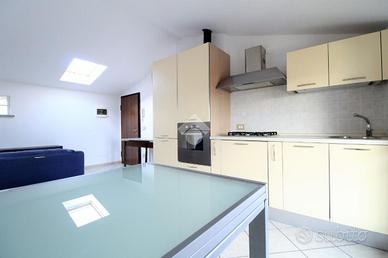 L'immobile ci accoglie con una grande zona giorno molto luminosa che ospita cucina e soggiorno.