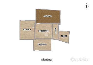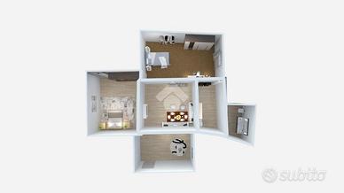 Gli ambienti si sviluppano in maniera funzionale, con un angolo cottura che si apre sul soggiorno, due camere da letto ben dimensionate e un bagno.