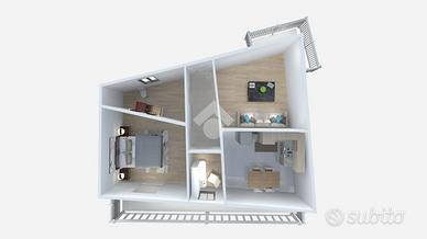 A valorizzare ulteriormente questa soluzione è la balconata che regala un affaccio arioso e luminoso, perfetto per momenti di relax all'aperto.