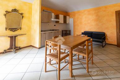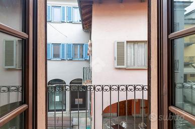 IN CENTRO PAESE: ALLOGGIO ARREDATO CON RISCALDAMENTO AUTONOMO. Un piccolo sogno per chi desidera stare in pieno centro paese con tutti i servizi sotto casa. L'appartamento, al piano primo, gode di una piacevole vista da entrambi gli affacci: uno sul verde condomiale e sulle montagne antistanti, l'altro sulla zona pedonale. L'ingresso accessibile da ballatoio dà direttamente sulla zona giorno composta da soggiorno e cucina. Il disimpegno è fornito da grandi armadiature e collega: una grande camera da letto con soffitti a volta ed un comodo bagno finestrato dotato di vasca. La soluzione, arredata, si completa di cantina al piano interrato. Oltre ad avere il riscaldamento autonomo con radiatori alimentati da caldaia a metano, l'appartamento ha i serramenti in legno doppi vetri. Richieste referenze.