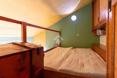 Al piano soppalcato, collocato nella parte più alta dell'abitazione, è presente una caratteristica zona notte, con letto da una piazza e mezza, intima e raccolta.