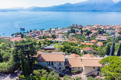 In elegante residence con piscina, composto da poche unità e situato in una delle zone più prestigiose della prima collina di Torri del Benaco, bilocale angolare al piano terra con terrazzo e giardino privato di 300 mq. in meravigliosa vista lago.