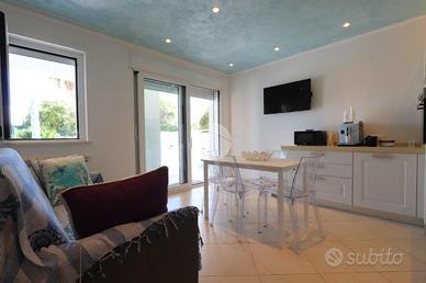 Per acquistare questo immobile devi vendere il tuo? Chiamaci per una valutazione gratuita. Tortoreto Lido: a circa 300 mt dal mare, in palazzina realizzata nel 2009 e ristrutturata nel 2023, proponiamo in vendita grazioso appartamento al piano terra. La casa si presenta pari al nuovo e dispone di due ingressi, uno condominiale e l'altro indipendente dove vista la notevole dimensione della corte privata è possibile posteggiare più di un'autovettura. L'area esterna, con una superficie di 80 mq, è divisa tra pavimentato e giardino e rappresenta senza dubbio il punto di forza dell'immobile. Al suo interno, l'abitazione, si presenta in maniera davvero impeccabile con arredo chiaro e colori che richiamano il mare e le vacanze estive. Un piccolo ingresso ci introduce nel soggiorno con angolo cottura e divano, una camera matrimoniale e un bagno finestrato. Una cantina di 8 mq al piano seminterrato completa la proprietà. La palazzina avendo usifruito del bonus 110 % dispone di: cappotto termico e acustico, infissi nuovi in alluminio doppio vetro, serrandine elettriche, portone blindato, termosifoni e predisposizione per aria condizionata. Arredo cucina e armadio camera da letto inclusi nel prezzo. Questa abitazione rappresenta la casa vacanza per eccellenza avendo uno spazio esterno davvero invidiabile dove durante la stagione estiva viene arredata con una piscina e una zona barbecue. Ideale per chi sta cercando una soluzione chiavi in mano, pari al nuovo, ma con il vantaggio di acquistare da privato. Seguiteci su Facebook Agenzia Tecnorete Tortoreto, su instagram tecnorete tortoreto e sul nostro canale Youtube tecnorete tortoreto. Contattateci per fissare una visita gratuita.