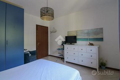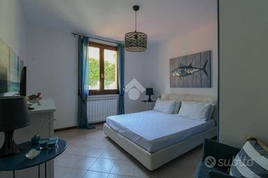 A sinistra, si trova un disimpegno che si apre su un bagno cieco dotato di un impianto di aerazione con vasca, oltre a una spaziosa camera matrimoniale.