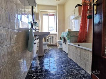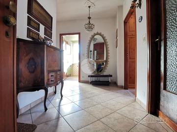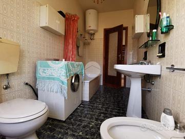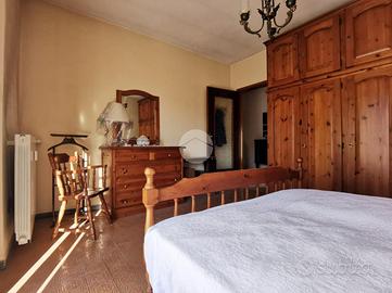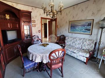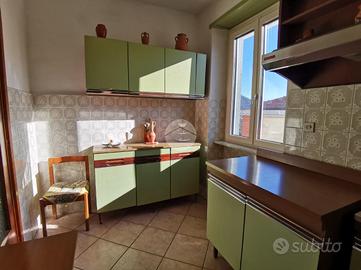 La porta d'ingresso apre sul disimpegno, il quale collega tutti gli ambienti dell'abitazione e presenta inoltre uno sgabuzzino. La sala vanta di grande luminosità e di vista panoramica grazie alla porta finestra, che conduce al primo terrazzo. La cucina finestrata risulta di modeste dimensioni e presenta allacciamento alla canna fumaria. L'appartamento presenta una sola camera da letto, questa è matrimoniale e rimane molto luminosa grazie alla seconda porta finestra, che conduce al secondo terrazzo, il quale risulta soleggiato per gran parte della giornata. Completano la proprietà il bagno finestrato e la cantina situata al piano seminterrato del condominio.