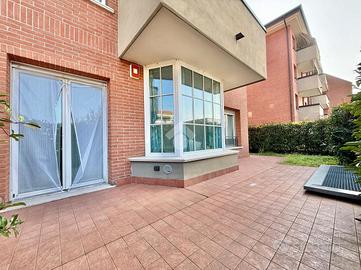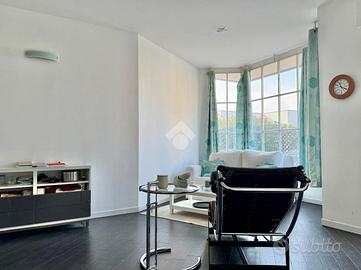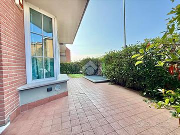TREVIGLIO CENTRO Zona stazione Fs centrale: In zona residenziale comodissima per il centro storico cittadino proponiamo appartamento in 'classe energetica B' dotato di bow window, giardino privato e box di proprietà di 17 mq, posto in piccola palazzina signorile costruita nel 2011. L'immobile è composto da ingresso, ampio soggiorno con cucina a vista dal quale si accede sul giardino privato di 70 mq circa, disimpegno, bagno con doccia, camera matrimoniale e box di proprietà di 17 mq situato al piano interrato. ULTERIORI INFORMAZIONI: Riscaldamento con gestione autonoma a pavimento tramite caldaia a condensazione e spese condominiali annue pari ad euro 880, videocitofono, cancello carrale elettrico, pannelli fotovoltaici per acqua sanitaria privata e corrente per le parti comuni, serramenti in legno con triplo vetro fonoassorbente con apertura a vasistas, impianto di climatizzazione, impianto di allarme e porta blindata.