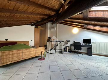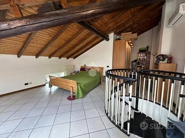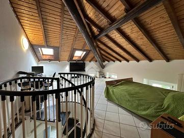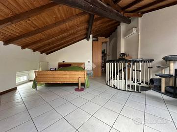 Salendo al piano superiore la spaziosa zona notte completamente abitabile e impreziosita dalle travi a vista dall'aria suggestiva.