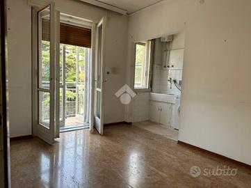 Internamente l'immobile si compone di: cucinotto con tinello e uscita al balcone con vista aperta, due comode camere matrimoniali, bagno completo e finestrato con vasca, ripostiglio interno e cantina al piano seminterrato.