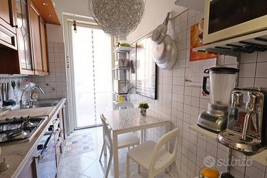 Comodo ingresso atterezzato con armadiature, accogliente soggiorno, cucina abitabile con accesso ad un poggiolo di circa 5 mq con piacevole affaccio, ampia camera matrimoniale e bagno completo finestrato con la vasca. Cantina finestrata in muratura di 7 mq al piano seminterrato dello stabile e lastrico solare condominiale con vista panoramica sulla zona circostante.