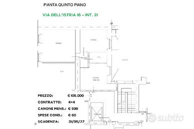 L'appartamento viene venduto ad uso investimento ed è attualmente affittato al canone mensile di euro 500,00 + euro 60,00 di spese condominiali mensili con contratto di locazione 4+4 con scadenza maggio 2027.