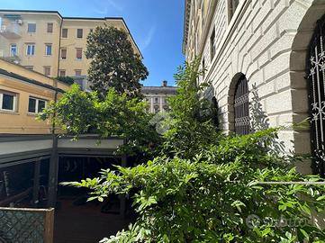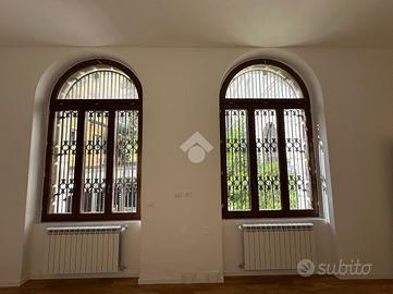 VIA CORONEO: tra i principali punti di pregio dell'immobile citiamo l'elevata altezza interna che supera i 3,50 mt, e l'ampiezza delle finestre ad arco impreziosite da una decorata ringhiera in ferro.