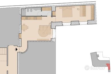 Nelle immediate vicinanze è collocata la camera da letto matrimoniale, anch'essa rivolta sulla tranquilla corte alberata all'interno della quale è possibile predisporre una cabina armadio. Il bagno invece si trova tra la zona giorno e la zona notte sarà completo di tutti i sanitari e provvisto di box doccia.