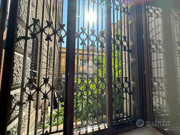 All'interno della corte condominiale è presente un parcheggio a rotazione per circa cinque auto. Motorini e bici invece si possono parcheggiare tranquillamente.