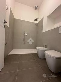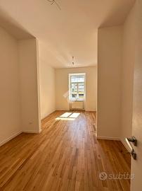 La zona living è molto spaziosa e può quindi esser arredata con qualsiasi tipologia di mobilio. Sono presenti inoltre gli allacciamenti per predisporre la zona cottura con piano a induzione. Nelle immediate vicinanze si accede al disimpegno che conduce al bagno completo. Proseguendo lungo il corridoio si accede poi alla camera matrimoniale con due nicchie ideali per realizzare due pratici armadi su misura. Questo ambiente come la zona giorno sono rivolti su due corti alberate.